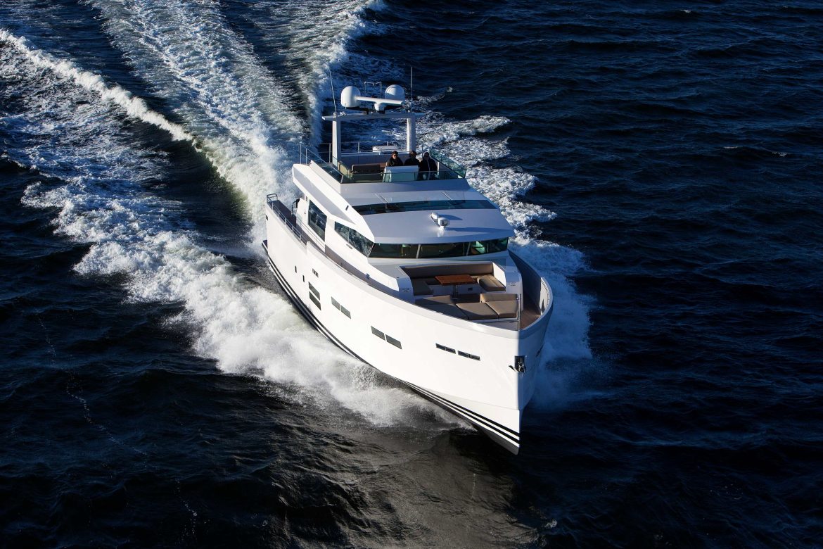 Tugev ja kerge süsinikkiust kere on ühendatud uusima IPS-jõuülekandega, mis võimaldab ligi 24-meetrisel jahil saavutada kuni 39-sõlmese tippkiiruse, vähendades samal ajal kütusekulu ja heitmeid kuni 40% võrreldes samaväärsete klaasplastist (GRP) konstruktsioonidega. Joystick-juhtimine tagab suurepärase manööverdusvõime ning vaevatu käsitsemise nii sadamas manööverdades kui ka sõidu ajal.